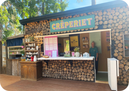 Creperiet är beläget vid “torget” som finns innan entréhuset. Öppet alla dagar som sommarens äventyr spelas.